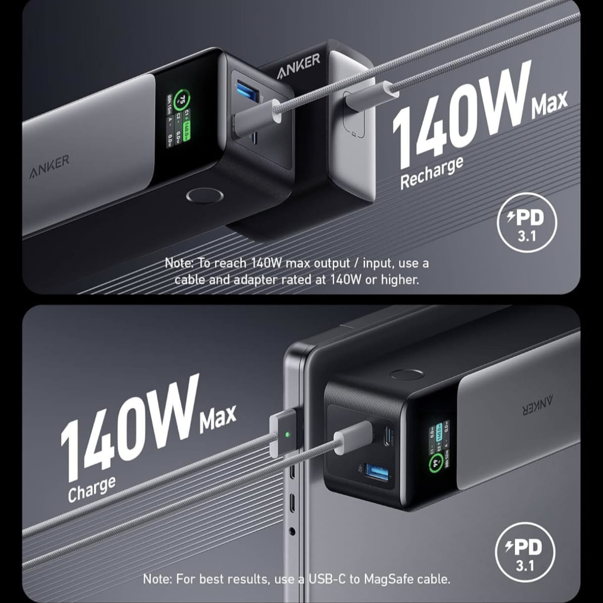 24,000mAh 3-Port Portable Charger with 140W Output, Smart Digital Display, Compatible with MacBook Pro/Air, iPhone 17/16 Series, Samsung, Huaiwei, Dell